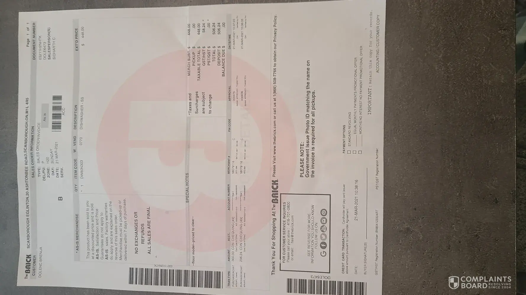 I bought a fridge and a dishwasher in January, 2019. I came in there and told the sales person specifically that I'm looking for the said appliances that is going to be used for a daycare. They offered different options and decided to buy a Samsung Fridge and Dishwasher. This February of 2021, the dishwasher broke down. I called King and State and had us wait for 2 months and finally said that they only do repairs on residential homes. Since it is in a business, they cannot do anything about it anymore. I called The Brick Warranty Claims and they told me to just call the specific store where I bought the appliances. All they offered was for me to get the the warranty money back and nothing else. I told them, I am not interested in getting the warranty money back and all I want is that they repair or replace the dishwasher. They told me that the issue is that its in a daycare and that the sales person that helped us was not aware of these things. I told them its not my fault and I was very clear and transparent to them on where the appliances are going to get used. That because of that untrained employee, I am the one loosing money because they sold me a dishwasher that broke down after 2 years. I want it repaired or replaced so I get my money's worth of the dishwasher. I spent $2200 for both appliances and now they're giving me $300 for nothing, not even enough to buy a brand new dishwasher. They're offering me a good deal on a brand new dishwasher and I told them I don't want it because I am never ever going to purchase anything from them ever again. This experience is the worst and I am going to make sure it my family and friends that the Brick is the worst!