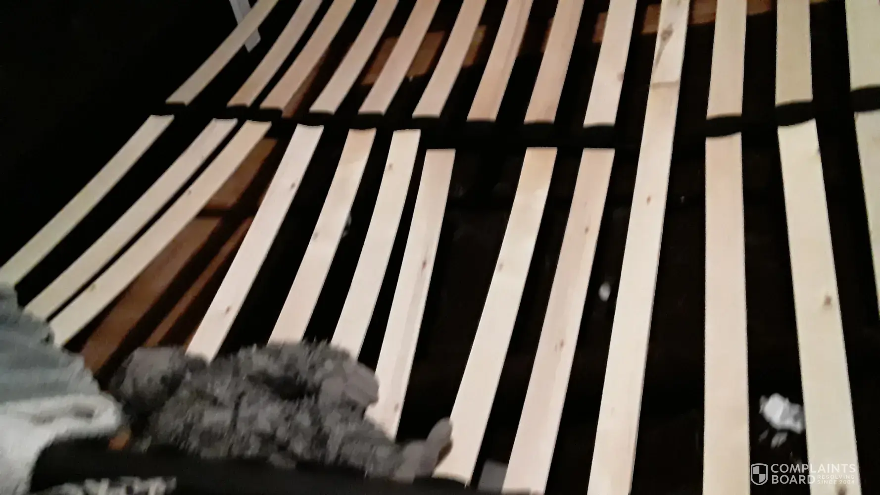 I recently purchased a new queen bed frame from The Brick. It's been about a month of sleeping on the bed and the bed has already broken. The support for the bed is being supported by cheap wood and the metal piece in the middle has broken. I am a single skinny Male, who is a light weight 140lbs and for no reason should my new bedframe break after a month of purchase.