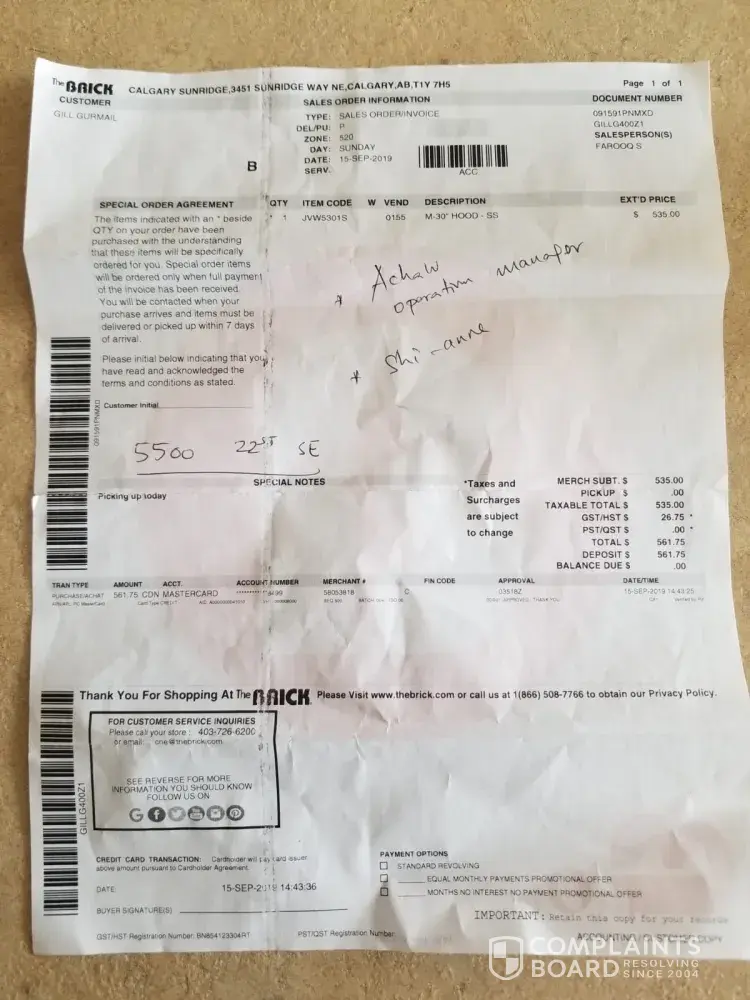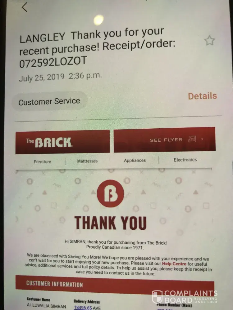 I have been looking at reviews of The Brick and am absolutely appalled at the negativity of this company. Too bad I did not look sooner.