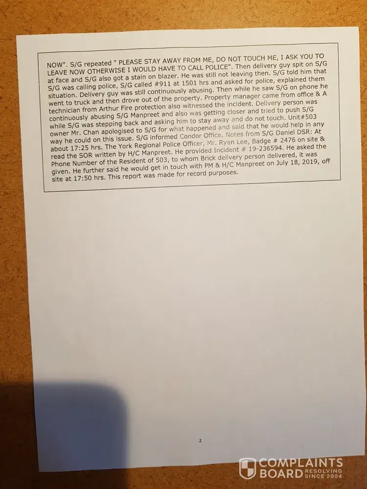 Read full complaintDamage to our condo, plus brick employee forged my initial on the delivery document