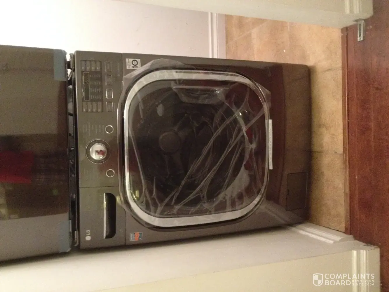 The doors of the washer and dryer were still closed with tapes.