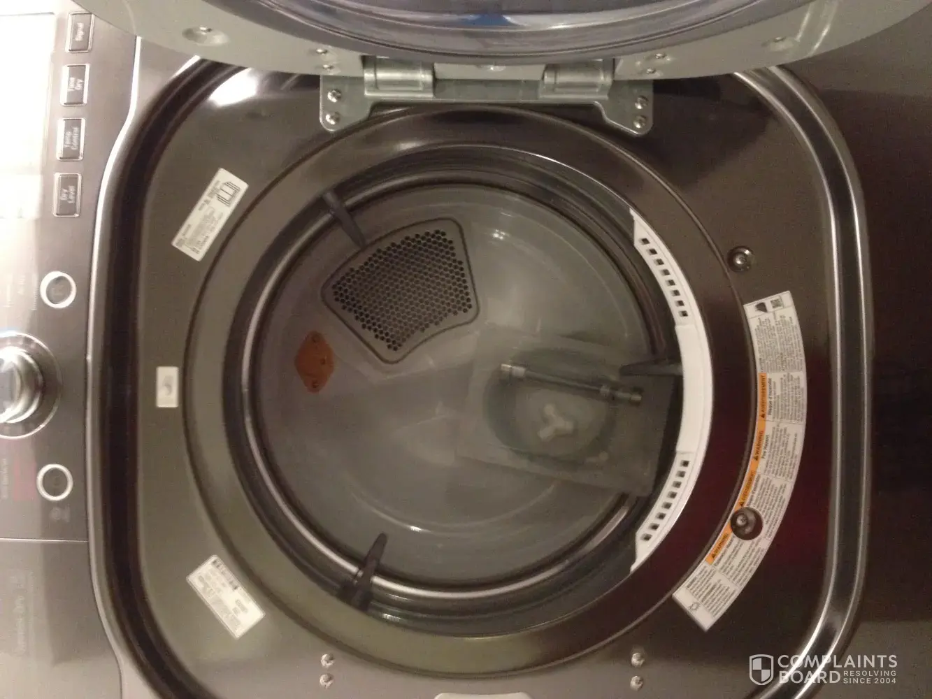 (5) After that they left, I opened the door of the dryer and found the kit for water intake of the dryer inside the dryer drum. This kit needs to be installed so that the dryer can take water for steam-dry the clothes. So the guys did not install it at all.