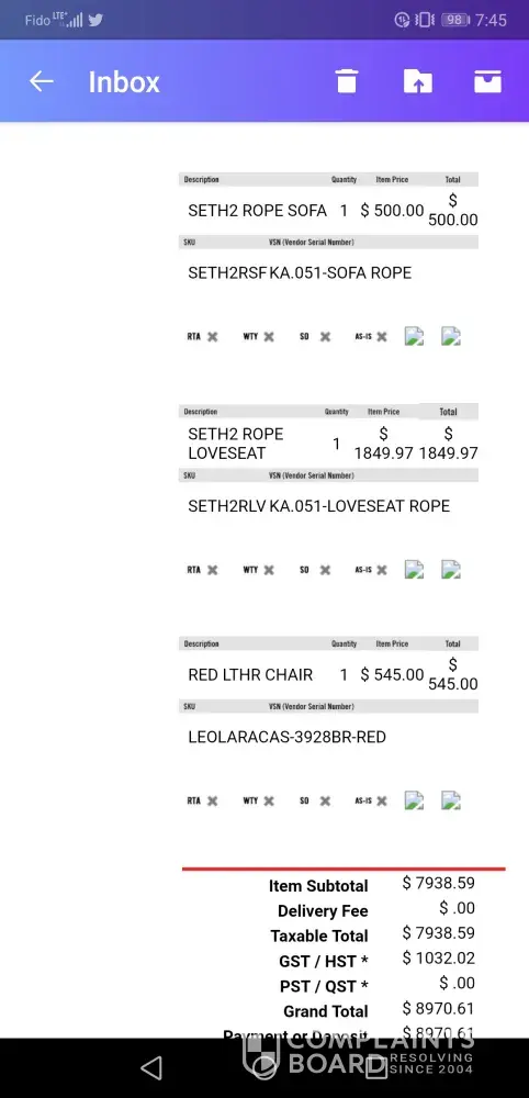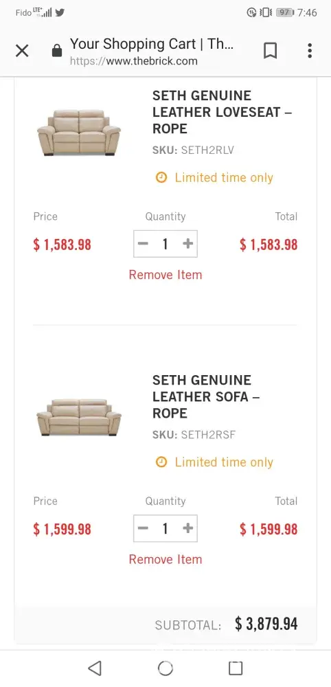 Bought sofa, loveseat set and other. Second time since December of 2018 that excuses of why my product did not arrive at my Brantford store.