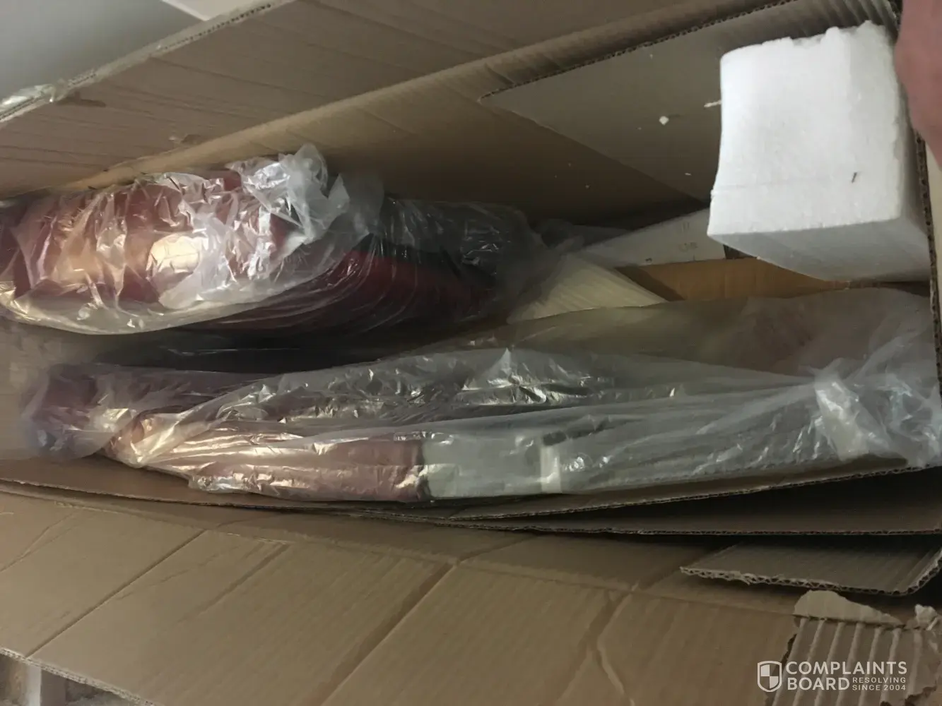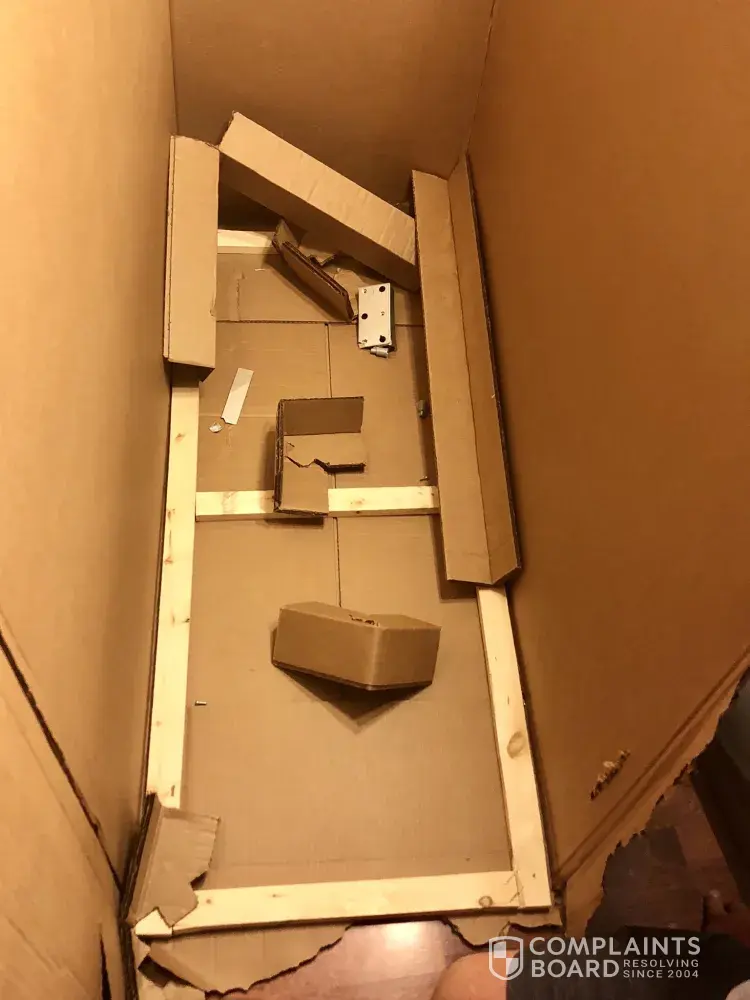 Dresser leg broken to pieces in box