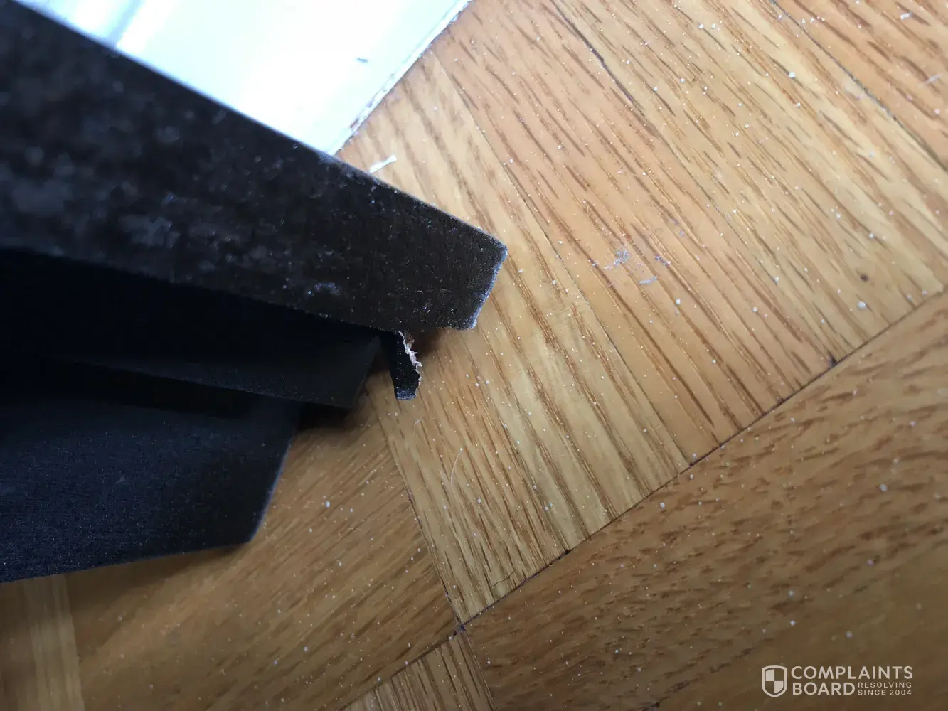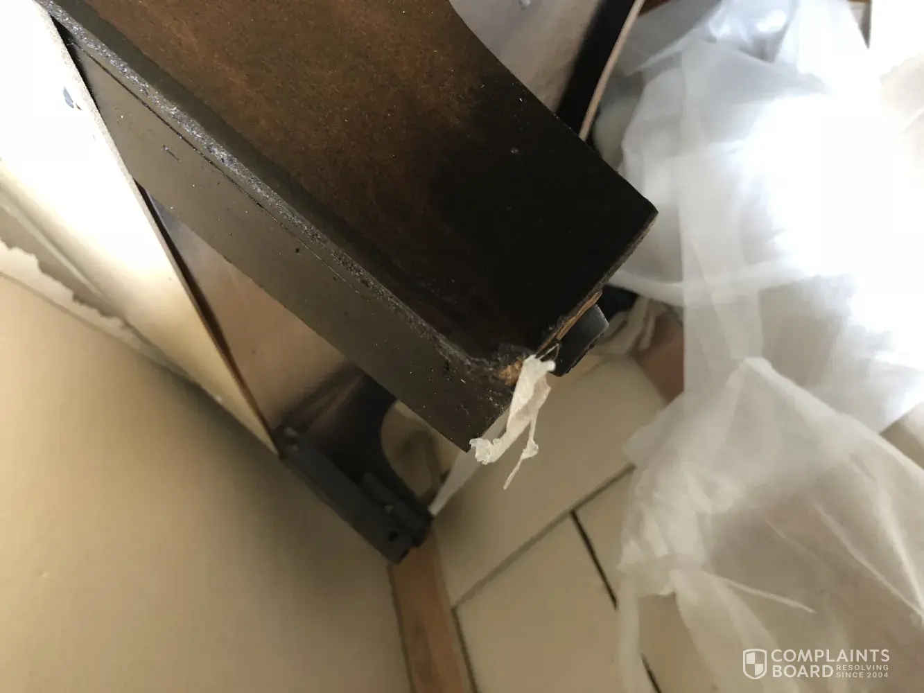 Footboard has damage to corner
