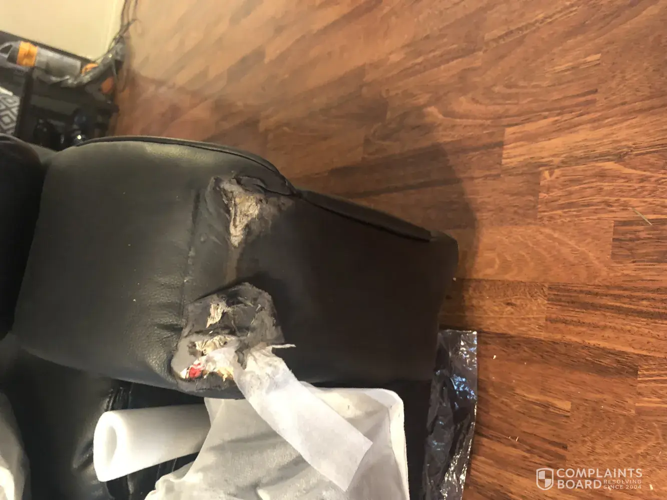I would like a full refund or replacement if this guaranteed not to happen again apparently that is not an option? I am not happy with my purchase or the service I received. There is only 2 people in the home and the damage is on portions of the sofa are not where we sit.