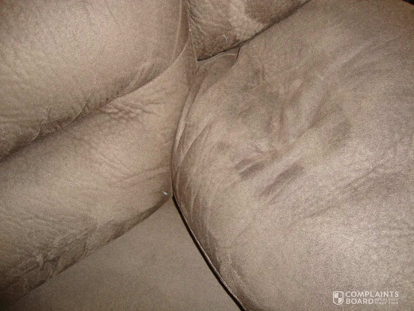 Within a few months the stain started coming off. We went back to The Brick within a year and were told that they would not do anything because we didn't get the extended warranty. We are upset because this is a defective product and we paid a high price for it. It has now been a couple of years since we purchased the item but looking at it we are very disappointed and angry. We are seniors on a pension and can not afford to replace it.