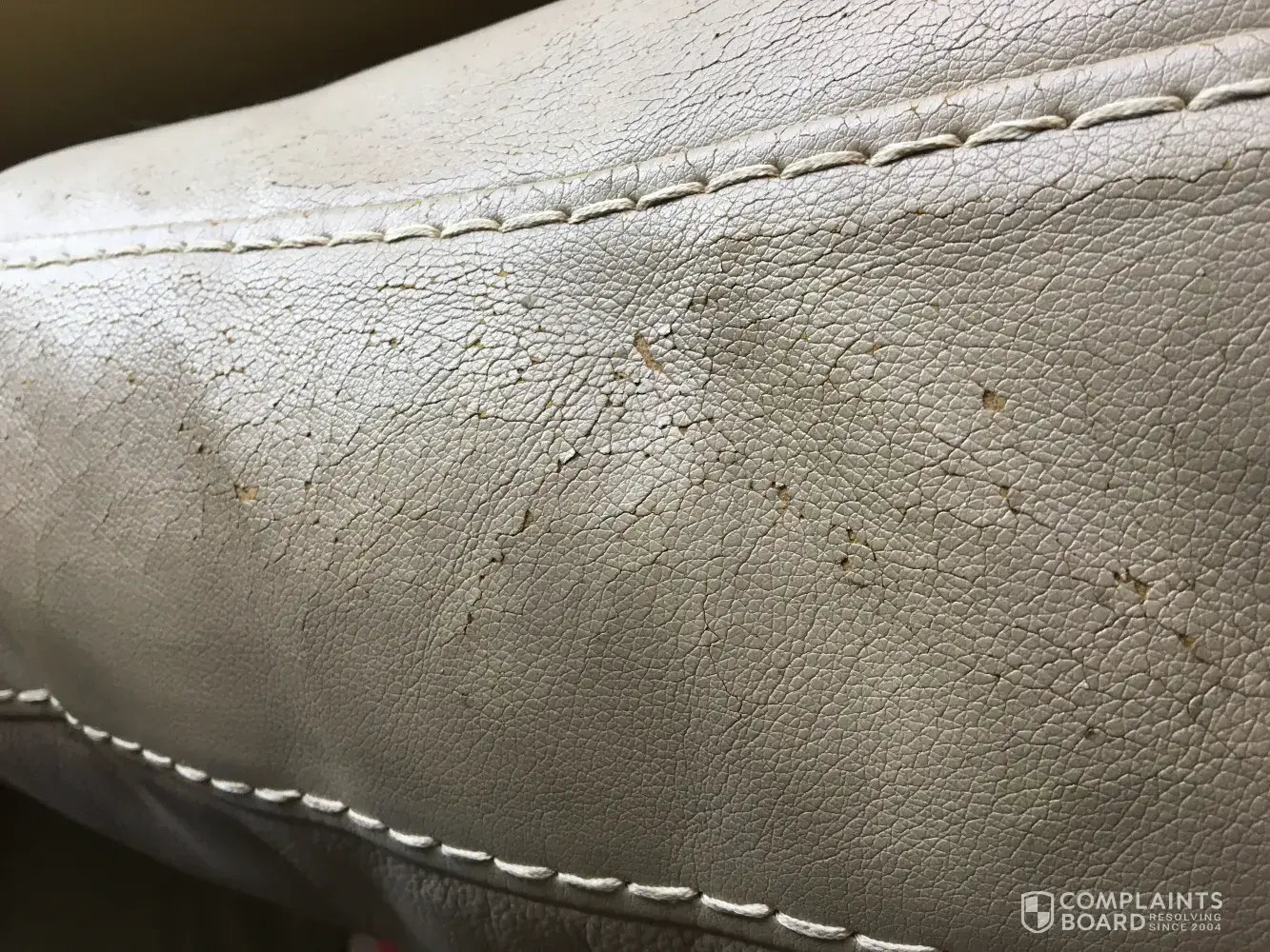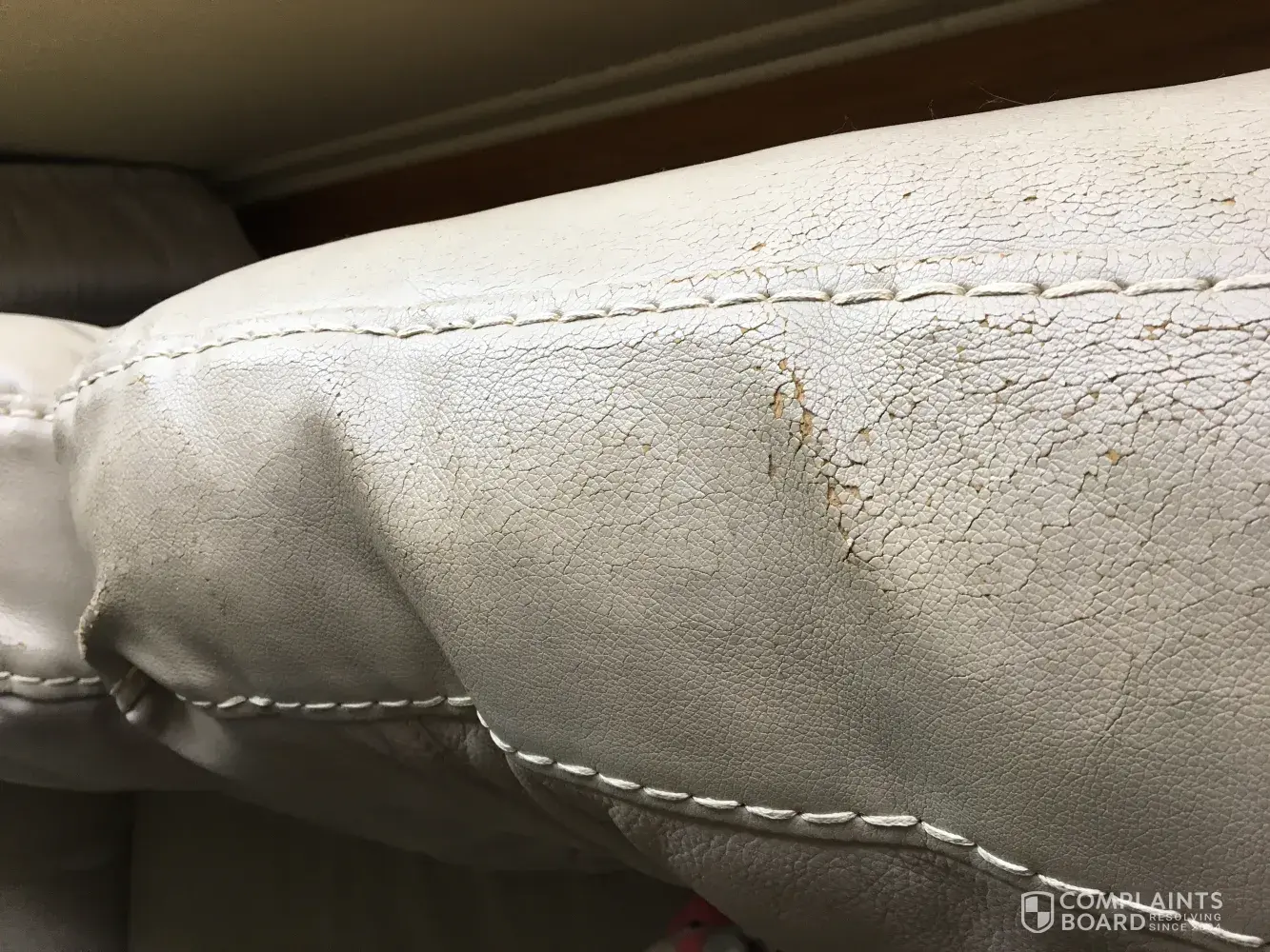 We really like this furniture. We have the oversized chair with powered recliner which is in great condition. Our concern is with the couch. The leather is splitting with cracks on the very top of the couch along the head rest area. This makes us wonder whether this real leather or not.