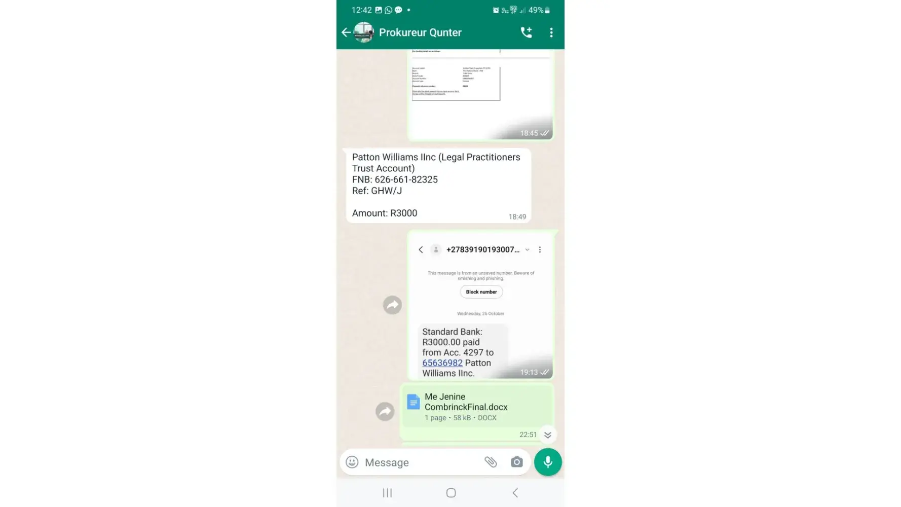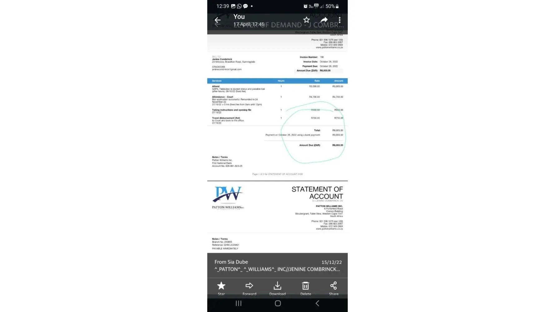 I contacted Quanter the Laywer from Patton Williams attorneys to go and get my daughter out the police man that arrested her was found quilty off misconduct Quantar requested me to pay R3000 immediately wich I did how ever he didn't get my daughter out off jail the following day I received a invoice for R9000