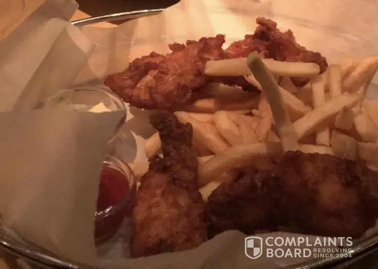 Never over a 15+year ever had a complaint with food. Every year gift cards are purchased. dinedin/happy hour. EntreeTake out The shrimp overcooked/crunchy. The chicken was not tender/ portion each, appx 3×3