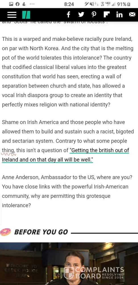 The Huffington Post’s earns a 1.4-star rating from 0 reviews and 22 complaints, showing that the majority of readers are dissatisfied with content and user experience.