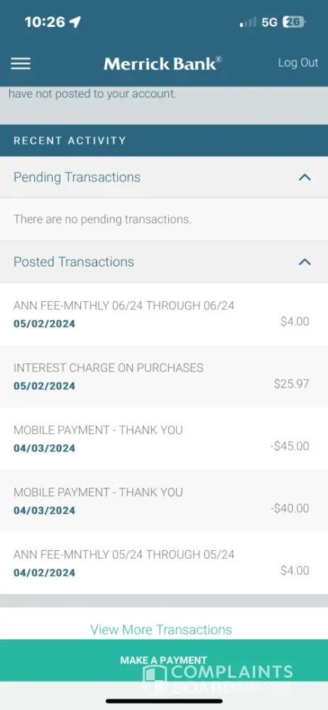 Read full complaintCredit card