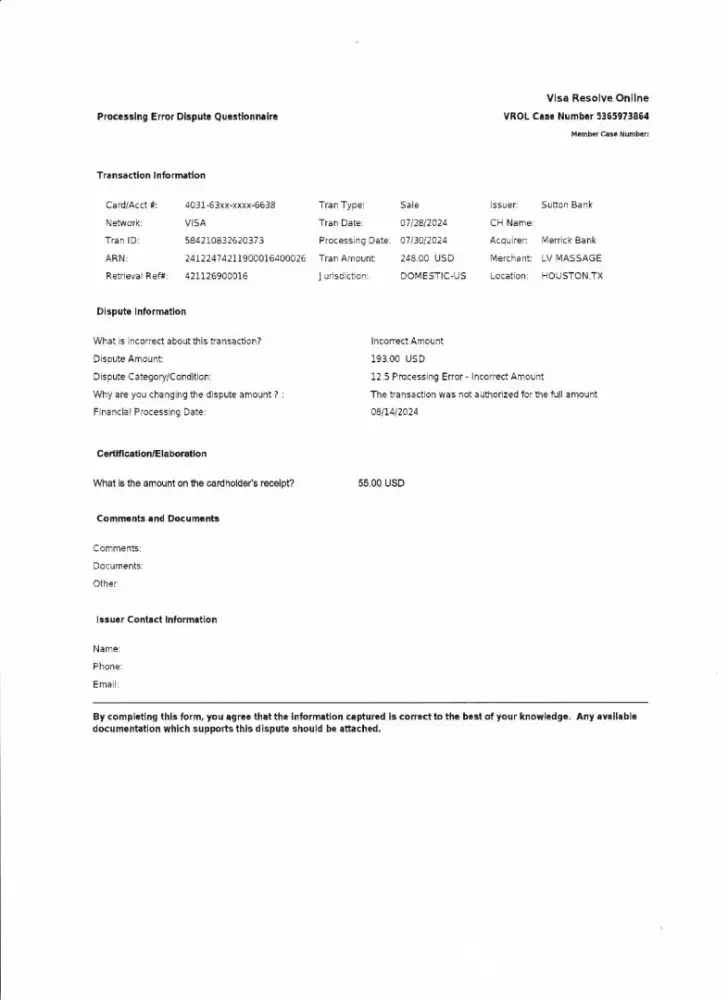 You’ve laid it out clearly — Merrick Bank needs to get their act together. It’s pretty straightforward: if the customer got their cash, they shouldn’t be trying to double-dip. Hopefully, your documentation gets this resolved quickly. Merrick Bank should step up and sort out this mess.