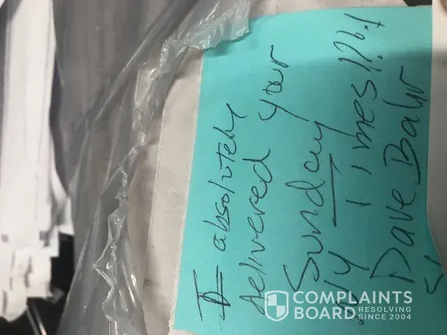 My mother who is 88 and is originally from NY and grew up reading the NY Times recently moved. I went online to change the address which went through. On the day she was expecting her Sunday Times it did not arrive and I notified them it did not arrive. It turns out the new address did not go through and the driver was sent out to deliver a 2nd paper. The driver left this on the paper "I absolutely delivered you SUNDAY NY times! Dave Bahr" He left his number which I will not publish. Really was this note necessary to a 88 year old woman who the NY times his employer gave him wrong information.