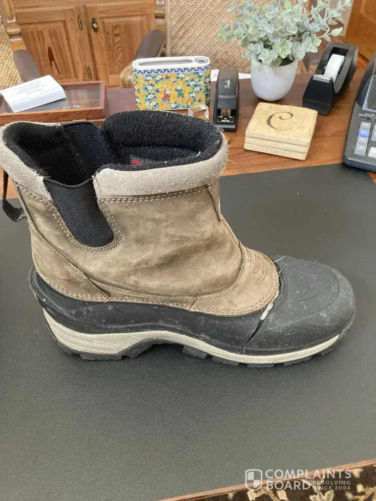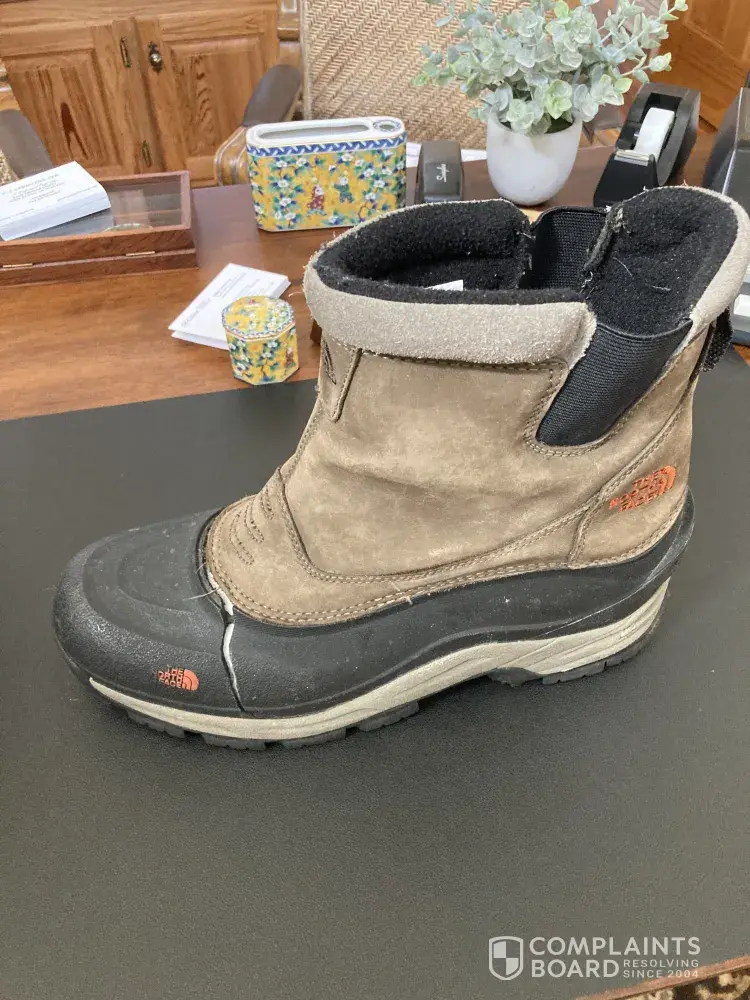 the bottom rubber sole fell off on one of the boots which is very dangerous when doing outdoor activities. I do have numerous north face products including the jackets which are very worm and never had a issue with any product until now. if at all possible would like a new pair of boots as i am sure it was just a defect with the adhesive process. also i sent pictures to show the boots were not abused in any way and still look new and that the sole came off in one piece and not in pieces. thank you for dealin with my complaint and i hope we can come to a happy solution.have a great day and good new year!