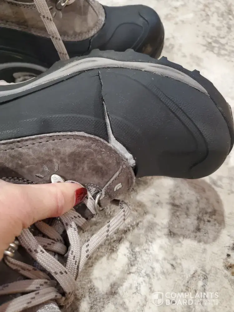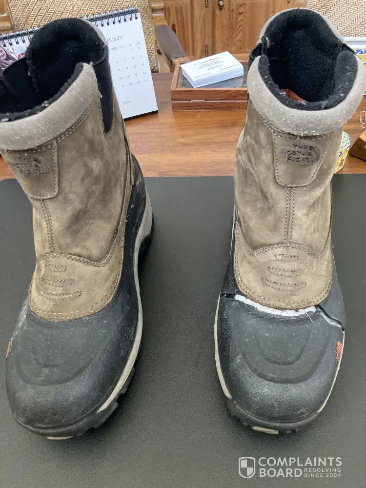 I'm sending in my winter boots that I received as a gift over two+ years ago that I wear maybe once a winter season since I live in Texas. The rubber toe has cracked on both sides and have pulled away from the cloth / shoelace area. Totally unacceptable for North Face and for the prices you charge. I have seen too many negative reviews and am anticipating...