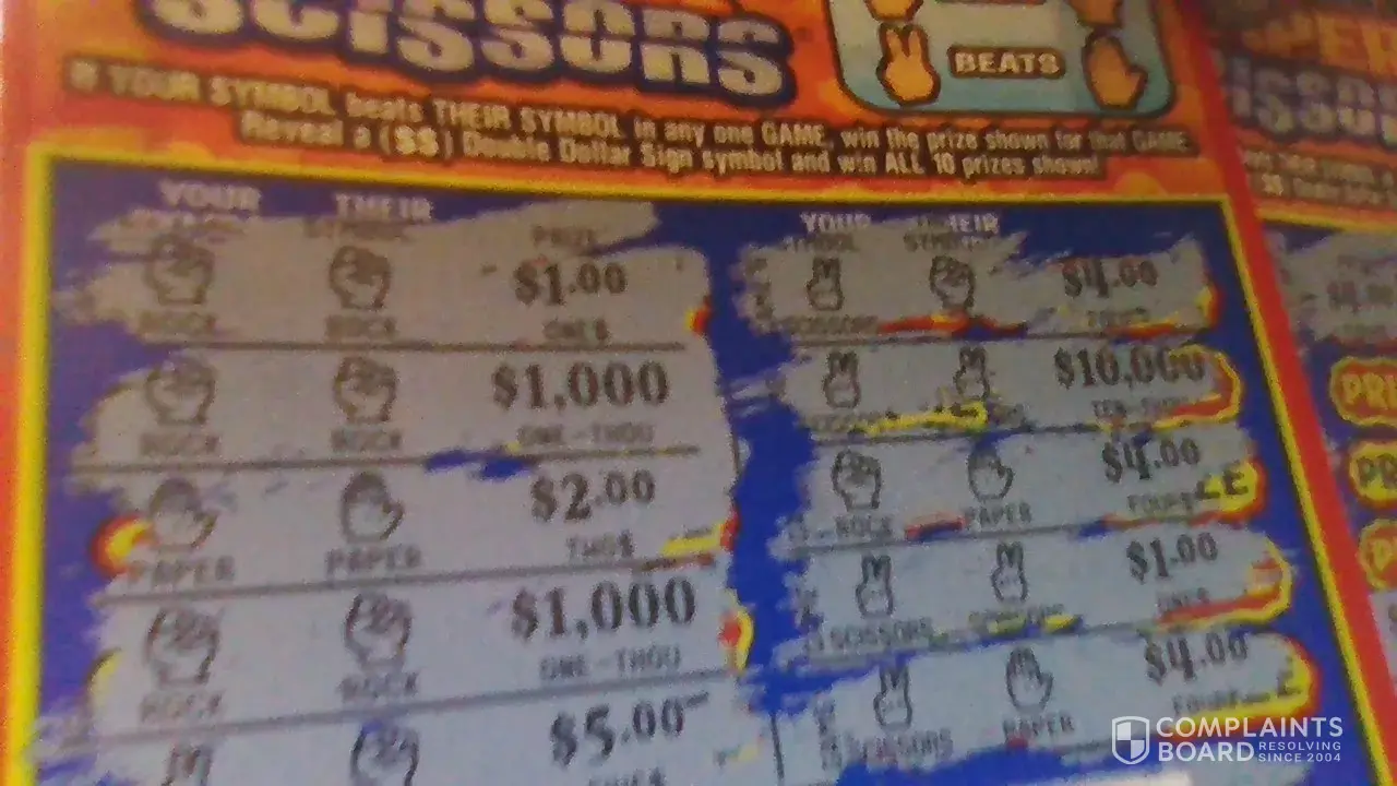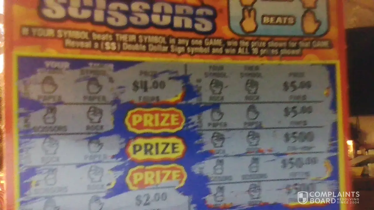 My complaint is they put the scratch offs in the machine starting from the end of row instead of the beginning which is not right if I buy a ticket it should start at 000, 001, 002 etc not 047 I have a better chance of winning if they put the tickets in correctly this has been going on for awhile I complained but they keep doing it.
