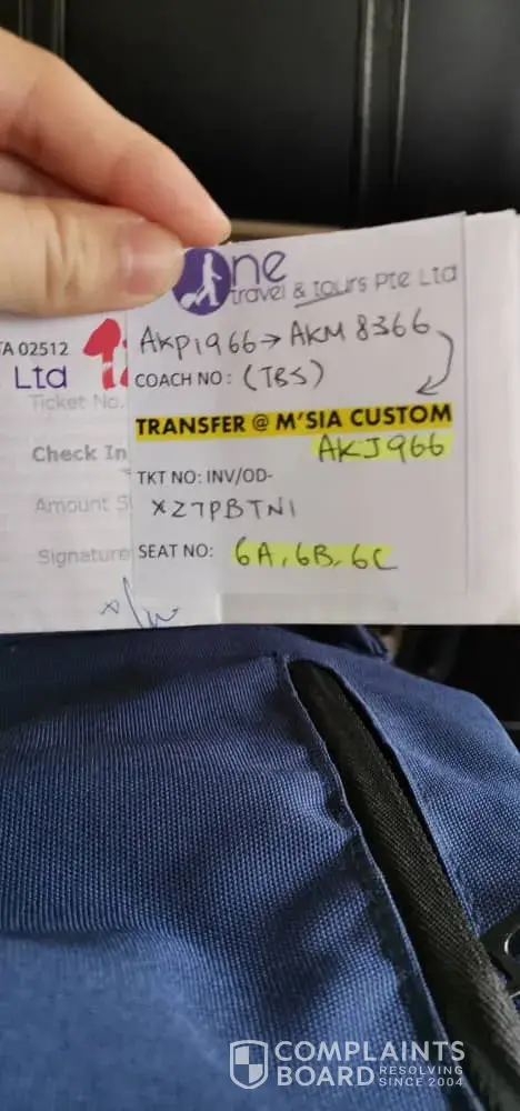 Incident: We bought 3 bus tickets at time stated above for parents and myself & we expects to have a pleasant tour back to Malaysia, however experience that we had is very disappointed and not happy.