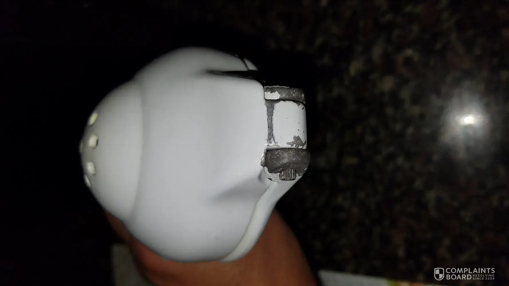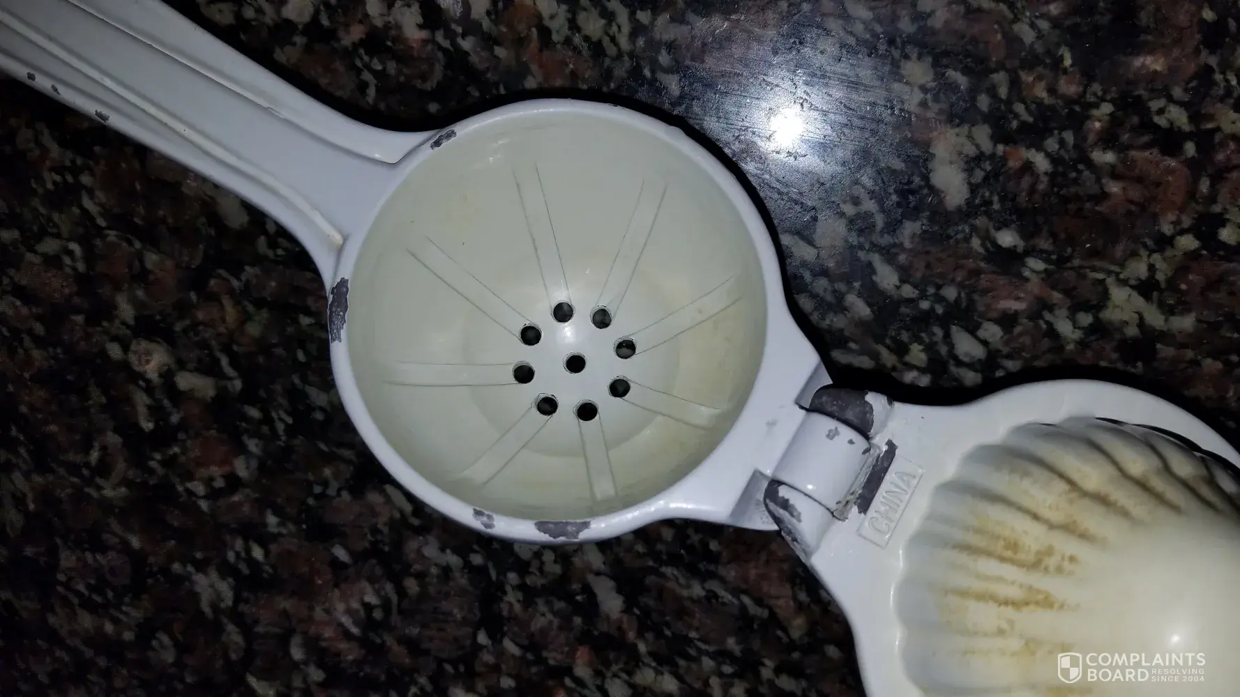 I have a white lemon squeeze and it is discolored and has been chipping the paint has chipped off from the handle and at the connection.