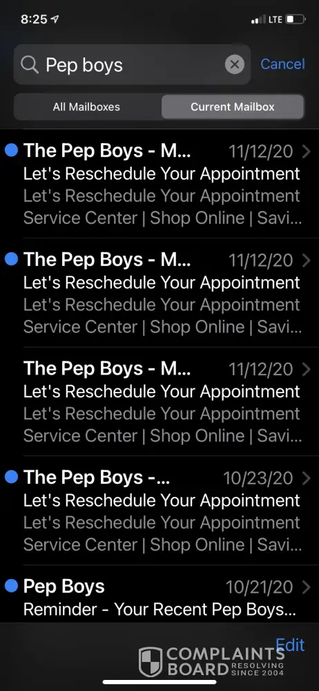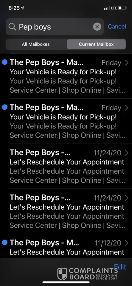 My experience has been terrible dealing with pep boys. I had made an order online before and received message to pick up. When I arrived to the store I was told there was nothing to pick up that wasted my time. Every since then I feel I have been sent harassing emails I have unsubscribe plenary of times but you guys constantly keep sending me other customers information. I tried to give you guys business again yesterday but hat was a failure again. I will never purchase or refer anyone to pep boys due to the unorganized professionalism and poor customer service. I ask to please remove my email ([protected]@yahoo.com) from any of your data I do not want emails sent to me regarding other customers information. It seems your company is not handing customers data correctly. If you want to speak with me I can be reached at [protected].
