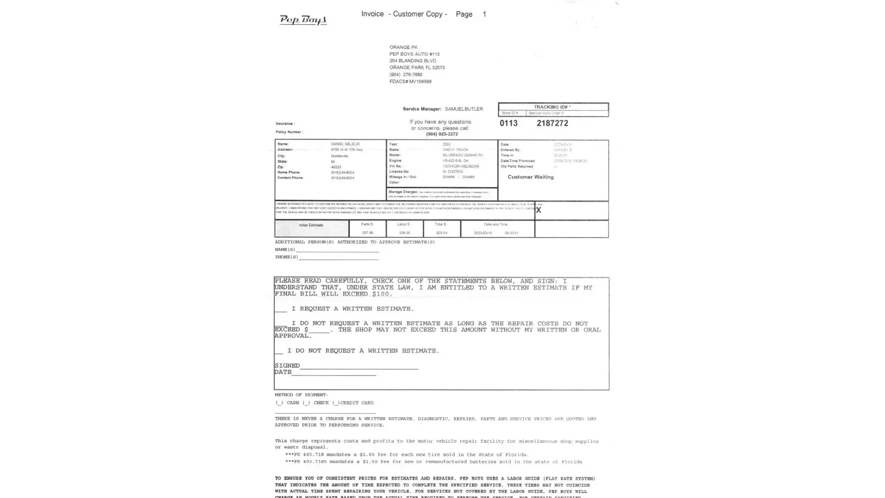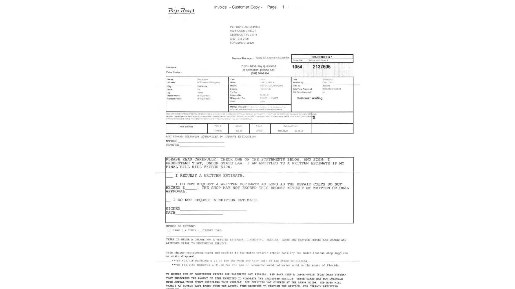 The Pep Boys Service and charges at Pep Boys 1703/Spring Hill, FL