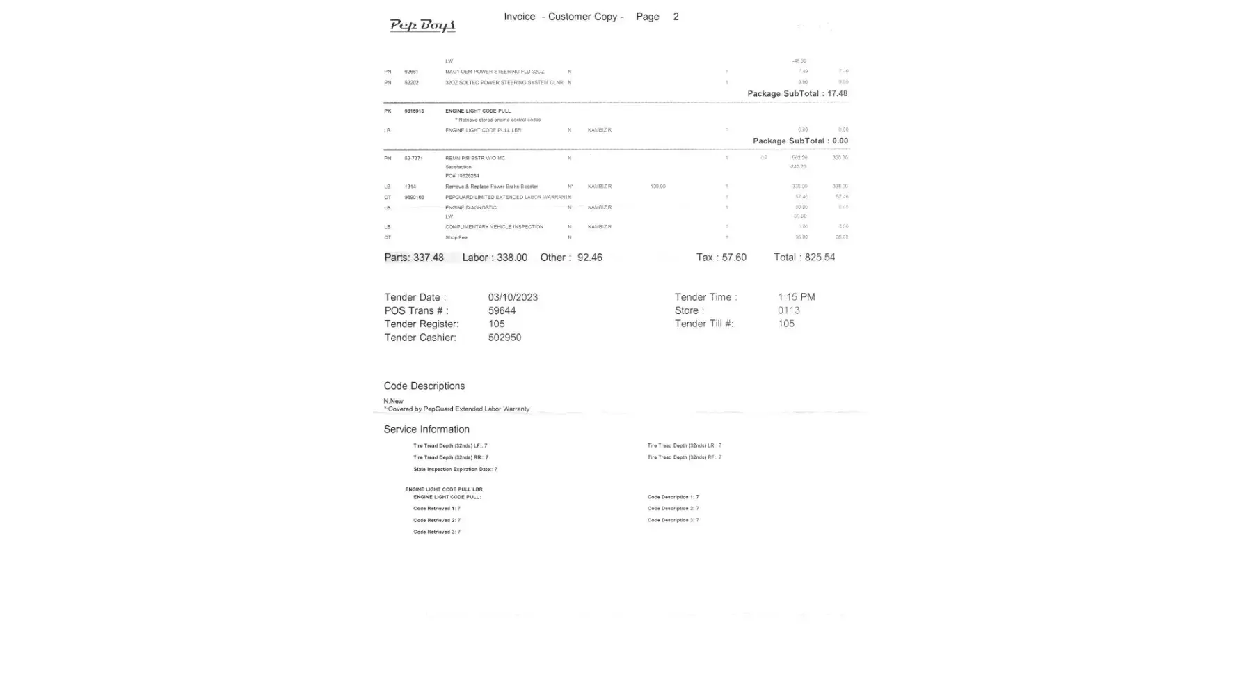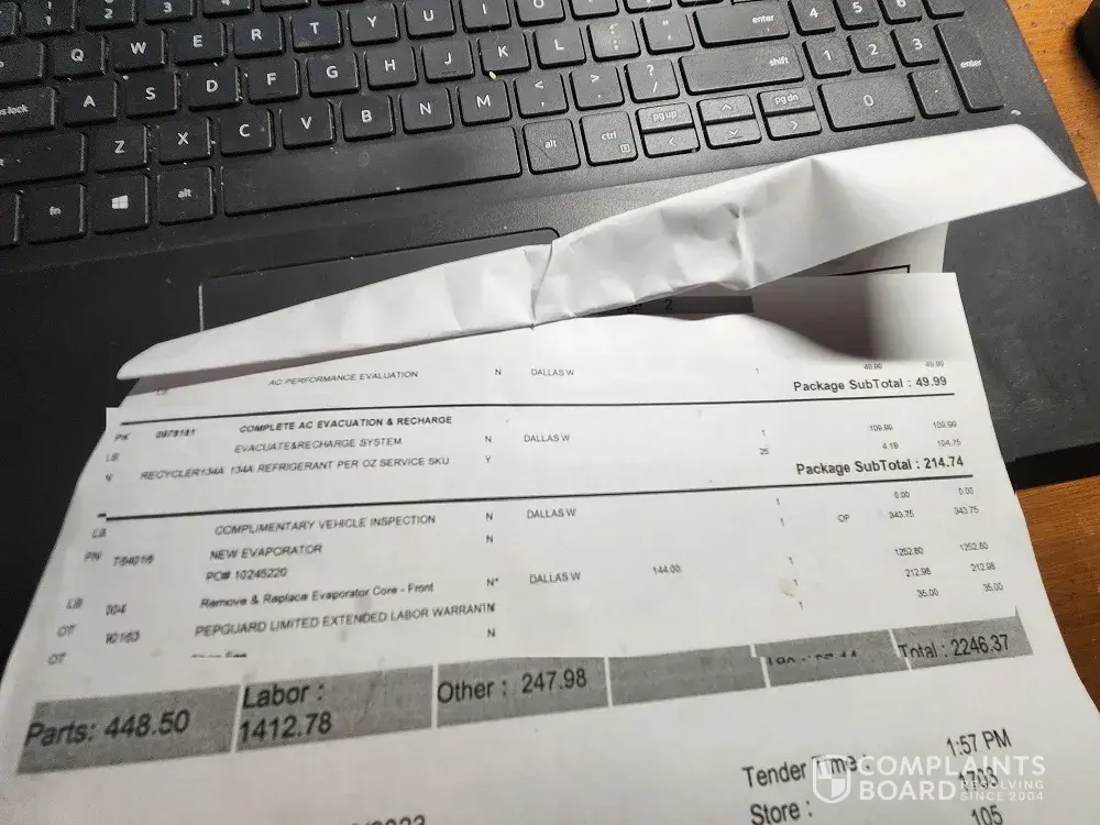 I am requesting resolution by reimbursing or credeting me the replacement parts, labor and tax of the power steering assembly and gear box replacement in the amount of $1820.19 from the original misdiagnosed ticket #[protected] on 2/22/23 that I paid on 2/24/23 to the Clermont Pep Boys Auto #1054. Replacing the power steering assembly and gear box was not the problem as diagnosed by Clermont Pep Boys Auto #1054 and I feel I paid for replacement parts and labor that did not resolve the problem nor needed changing as their fix did not fix the problem. Also, originally there was no leak from those parts as proof of the amount of power steering fluid I had to put in after going approximately 300 miles from the repairs made at the Clemont Pep Boys Auto #1054 and from the diagnosis of the real problem and repairs (power brake booster) made by the Orange Park Florida Pep Boy store #113.