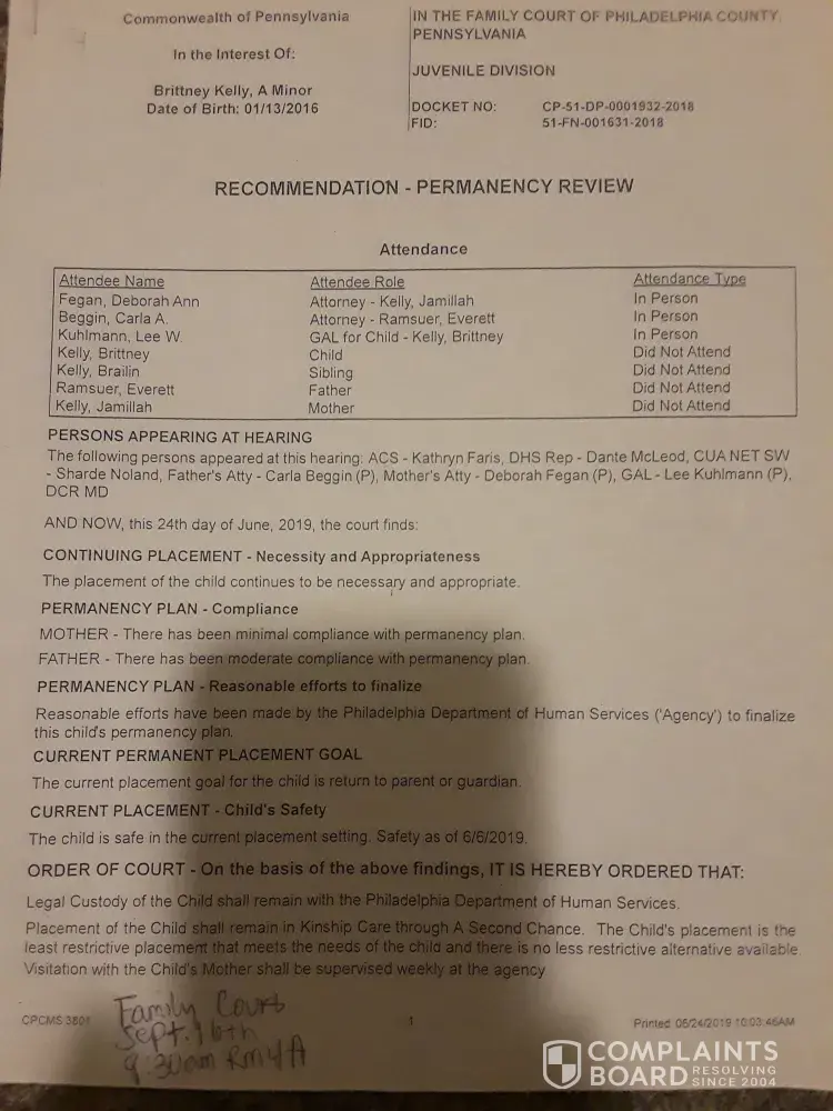 Subsequent to that we received a phone call from our Territorial Legal Department informing us that you filed an online complaint in which I was named and in which Susanne was named as victimizing you during and after the mealtime incident. You filed a complaint through our Safe From Harm online portal. All such reports go directly to our Legal Department. The report was sent after our meeting and the Wednesday meal.