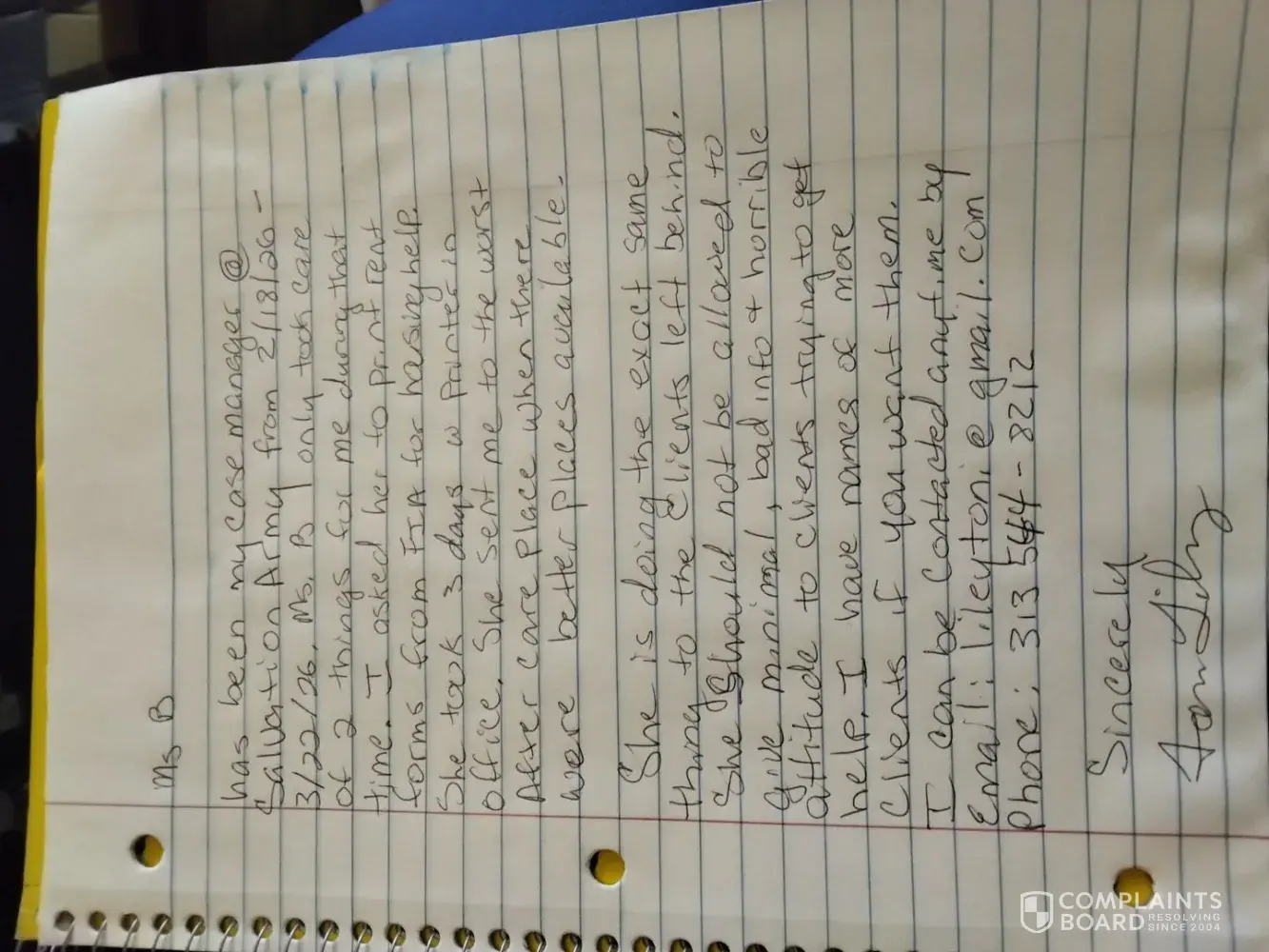 Claimed loss: her email is breanca.[protected]@usc.salvationarmy.org THEY CALL HER MS, B