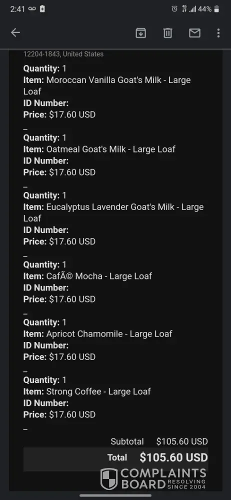 I want a refund the sight is not real and I just ordered 6 loaves of soap