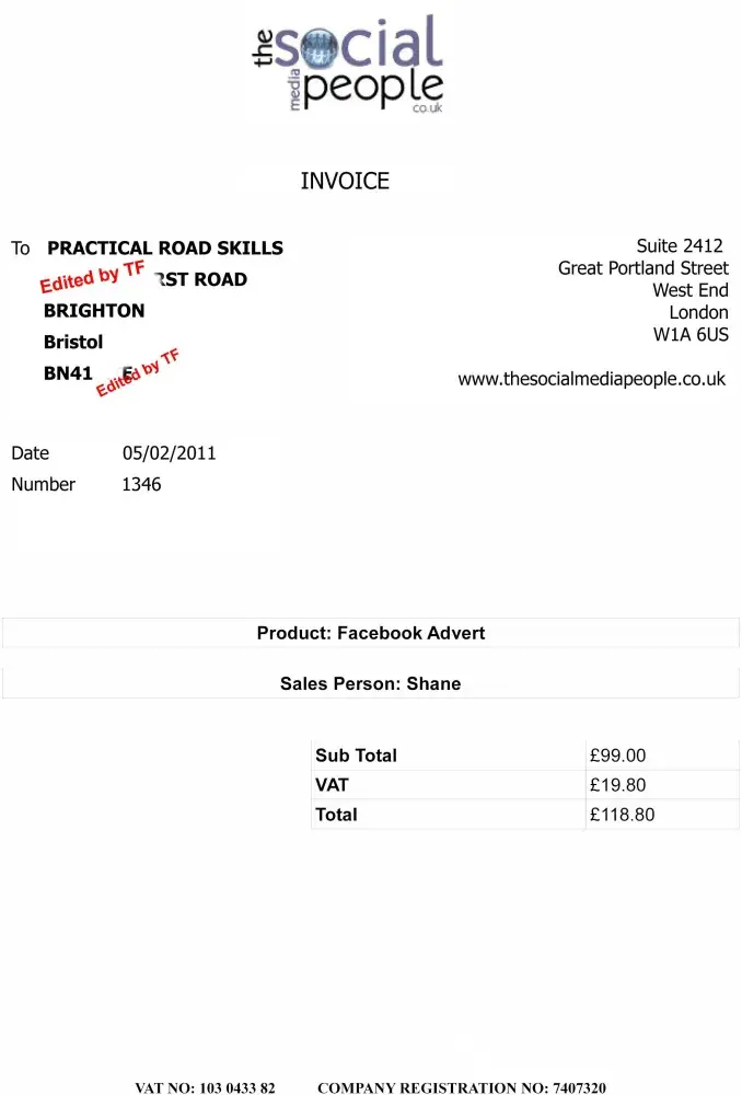 I wrote to The Social Media People 3 times on the matter, including a specific request for details of the solicitor whom they had employed, who contacted me 5 April 2011.