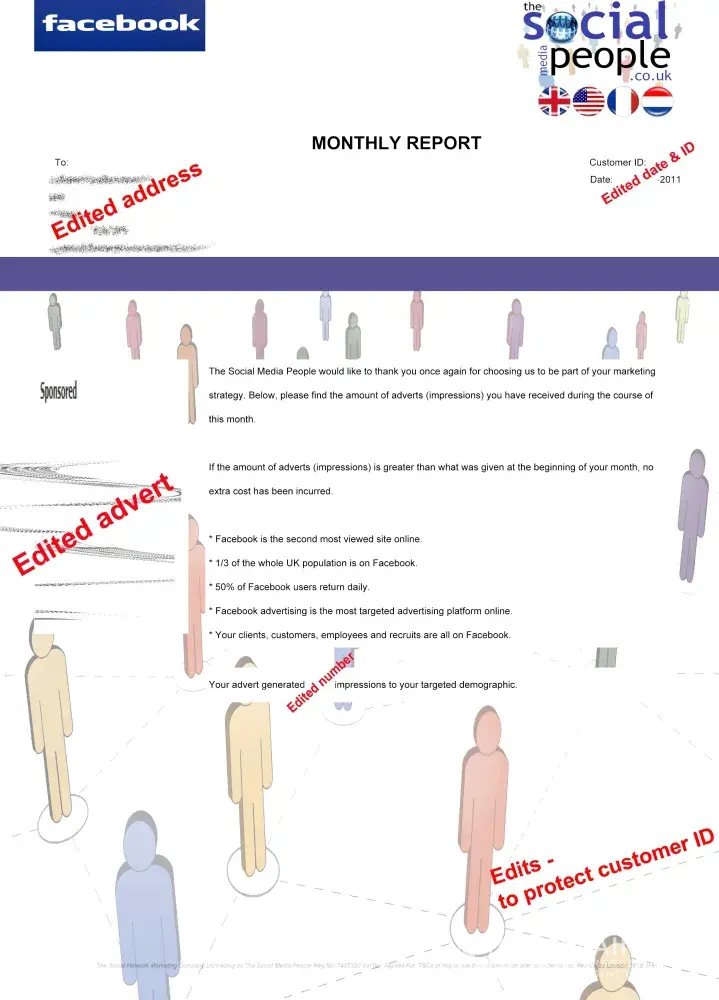 A genuine document recently sent out to customers of The Social Media People. (Edited to protect recipient's identity)
