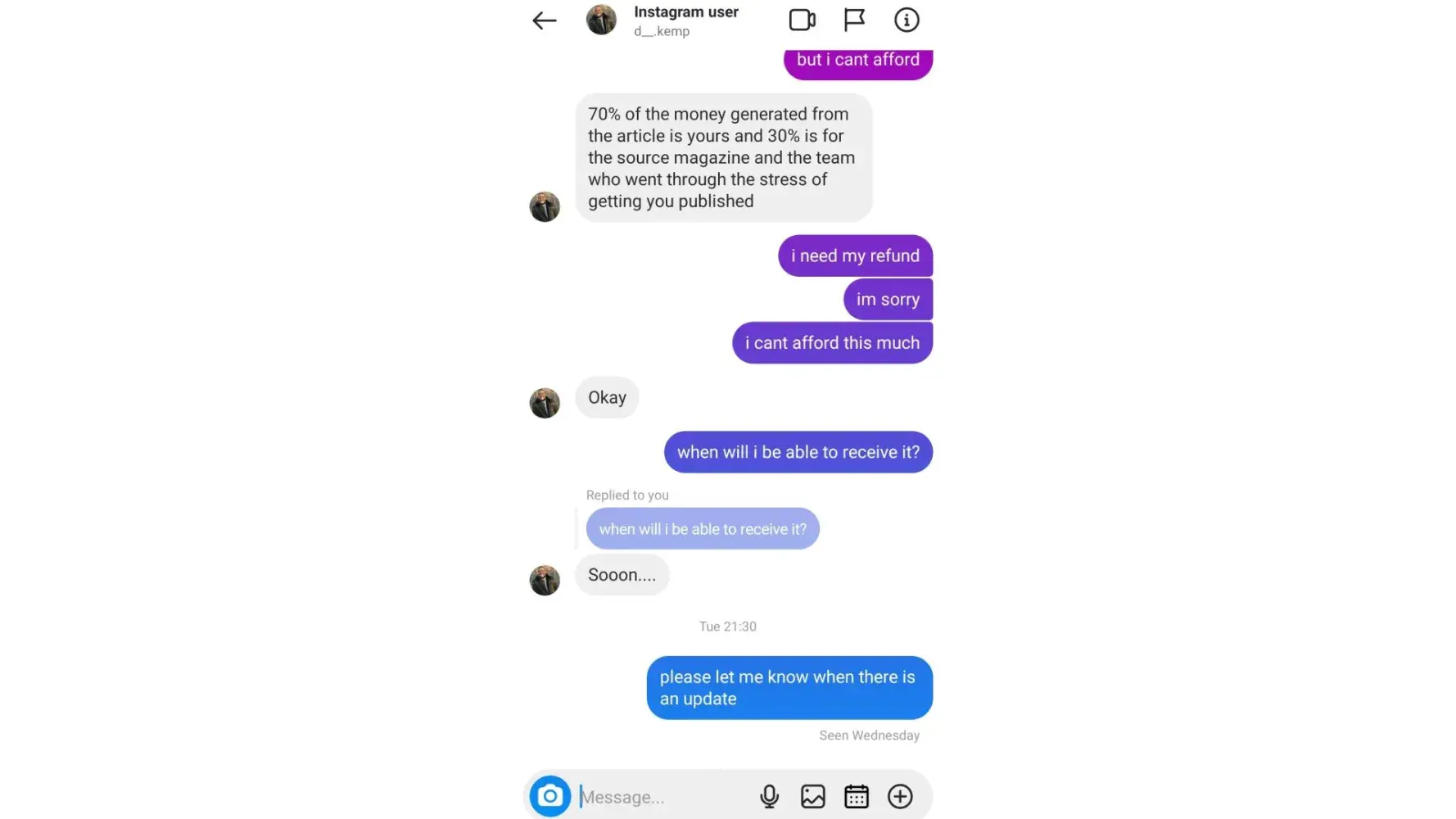 Desired outcome: I want my money back