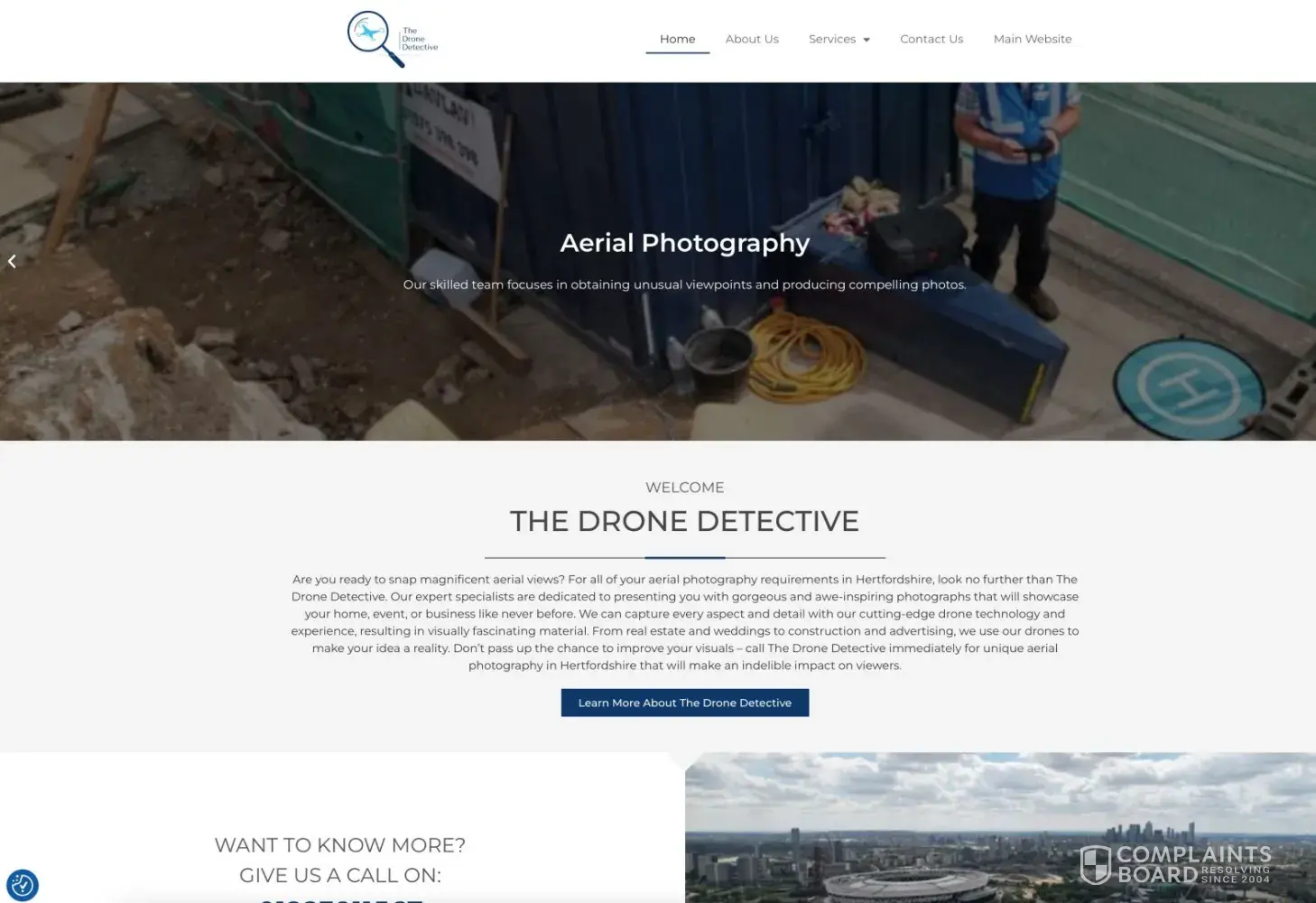 Desired outcome: Take down www.aerialphotographyhertfordshire.co.uk and www.aerialphotographyeastlondon.co.uk – breach of copyright on my photos by publishing them without consent. Admit that there is (and never has been) a contract between us.