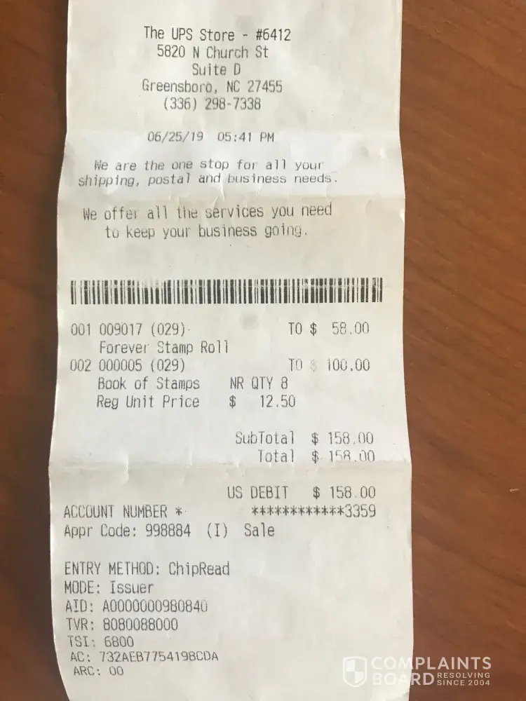 Read full complaintStamp purchase