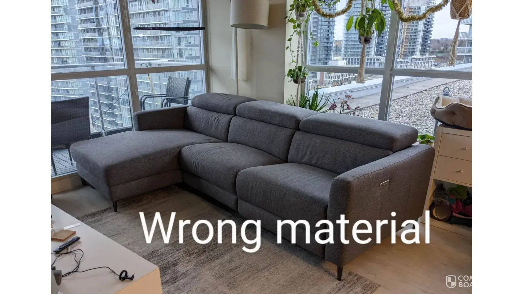 Come next week, Hudson Bay finally tells us they can do a condo delivery and offered to exchange the sectionals for the correct couch. They delivered with no issues but wait, the right orientation of the couch was now here, BUT THE WRONG MATERIAL. It was still not the couch that we ordered and bought over half a year ago.