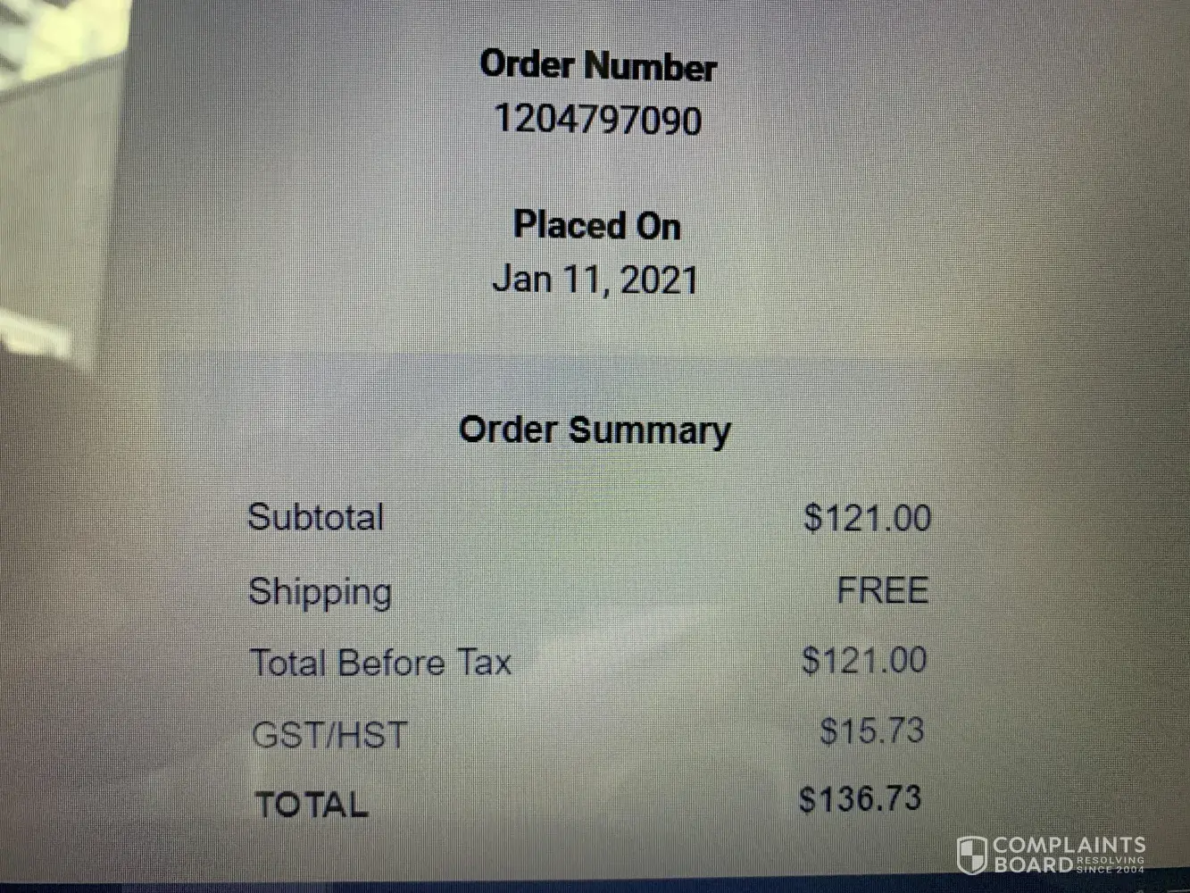 -Received email on May 2, 2021 stating my order was confirmed (Order Number: [protected]).