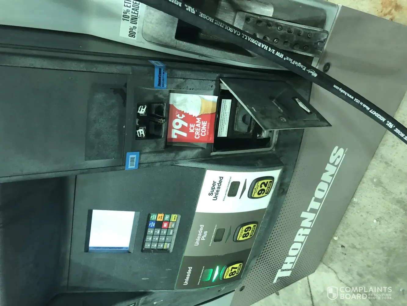 I pull up to only open pump at Thornton's gas station (Please see picture) and the pump looked like it was tampered with.