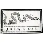The “Join, or Die” illustration was first published in 1754 by Benjamin Franklin as a political cartoon for the Pennsylvania Gazette, an early American newspaper. The cartoon is a representation of all of the British Colonies in a cut-up segmented rattlesnake, which Franklin described as “the present disunited state of the British Colonies.” (Source)