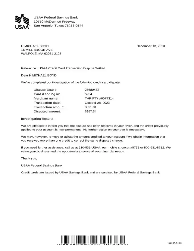 received bill .. the amount was disputed and resolved in my favor by USAA Federal Savings Bank. Thrifty car rental and USAA federal savings bank documents attached