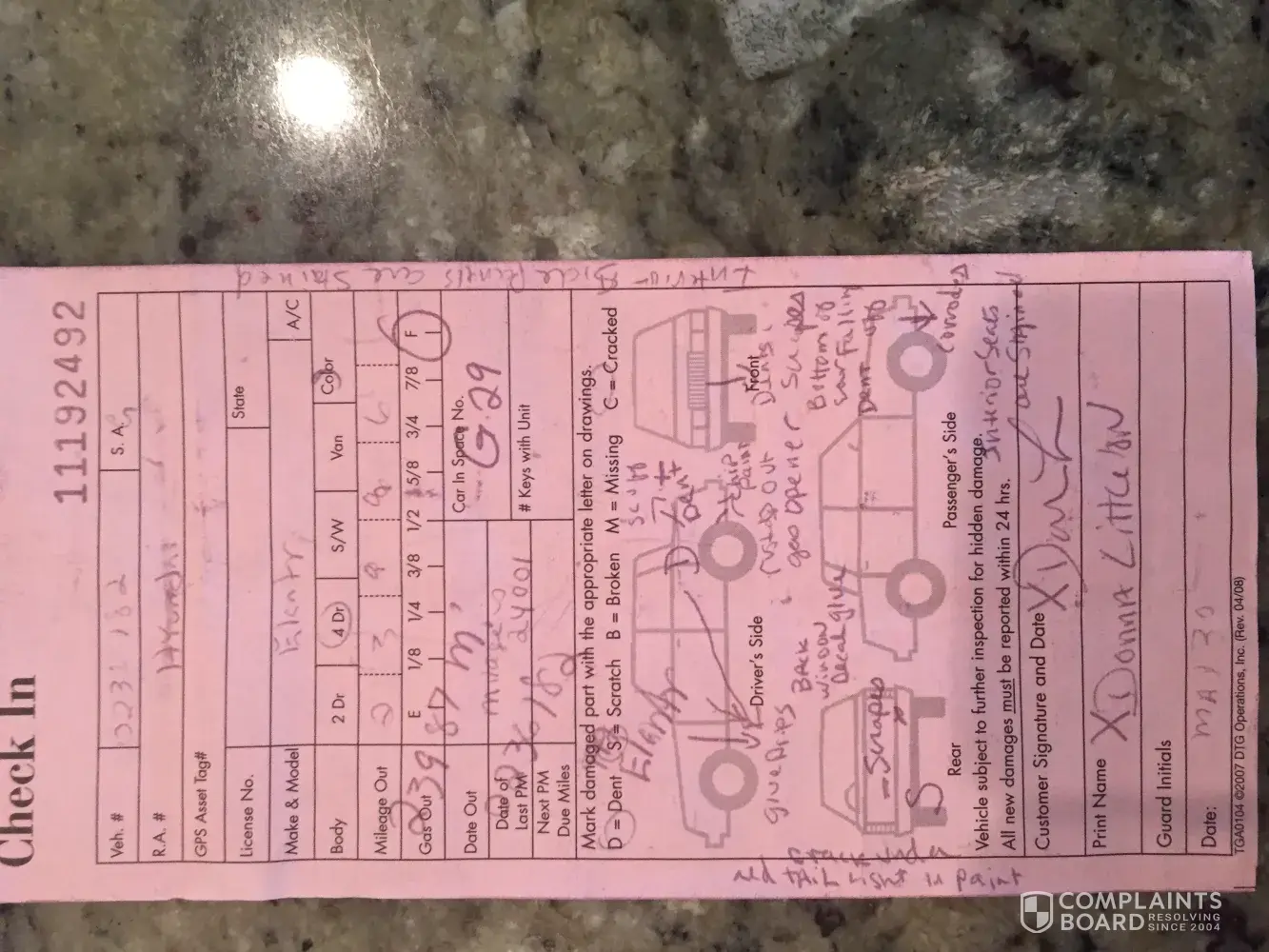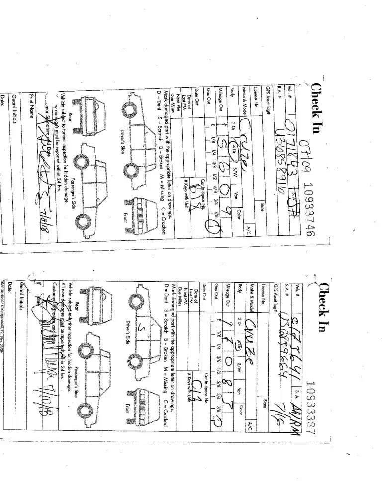 Now with all this information, apparently these were the last rentals of this vehicle, but what alarms me is the lack of proper inspections by the customers, and the rental car company location.