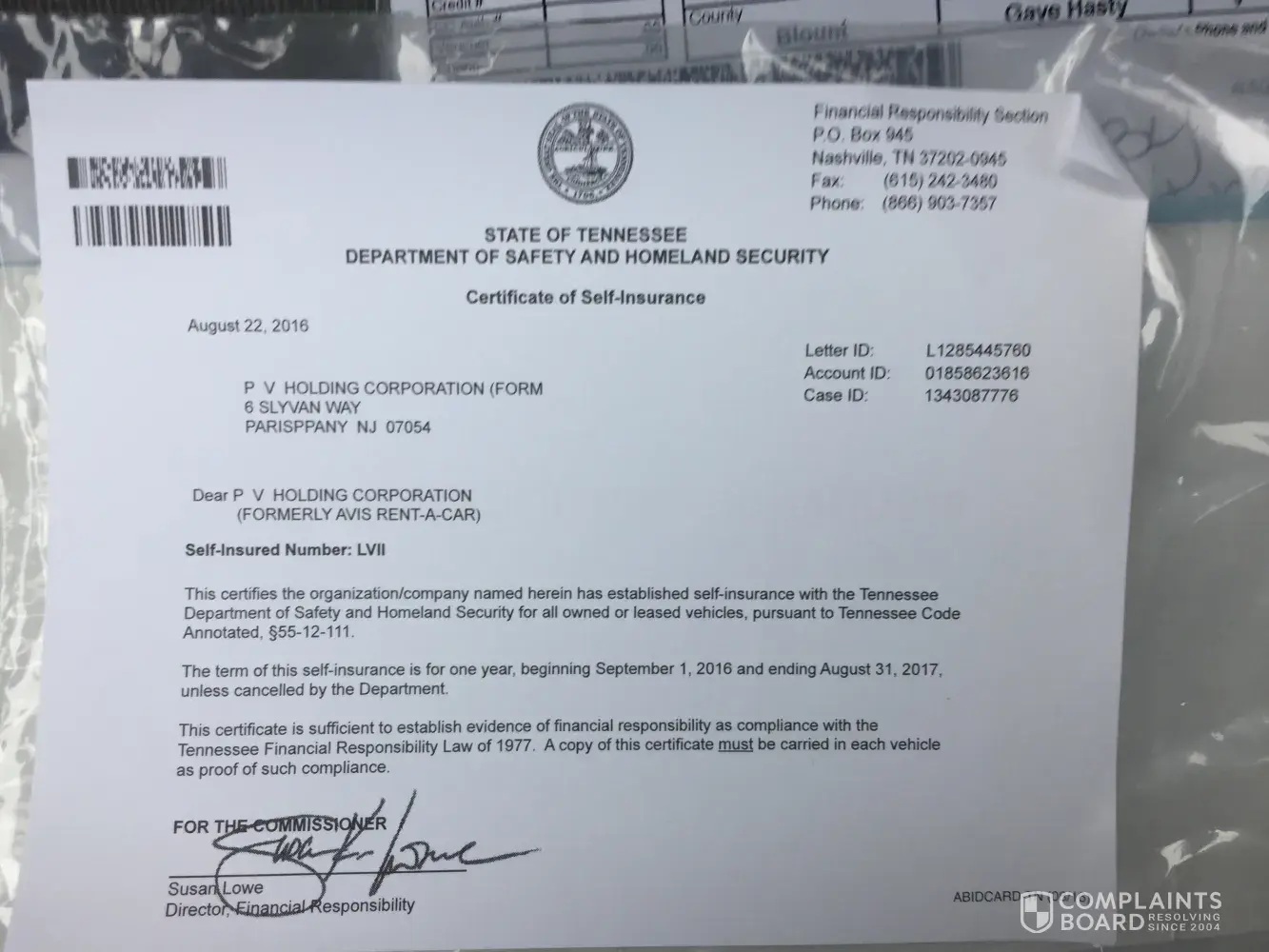 certificate of self insurance" in the car - expired 8/31/17 and no other certificate of insurance in the car. So on top of all of this the car did not appear to be insured. (See enclosed picture). I expect that someone from your company will respond to this situation and complaint and hope that you will rectify the situation financially. I was put through an extremely traumatic experience (being STRANDED out on a GA highway 4AM with an extremely unsafe car.) My life was also put at extreme risk because of the gross negligence on the rental cars part.