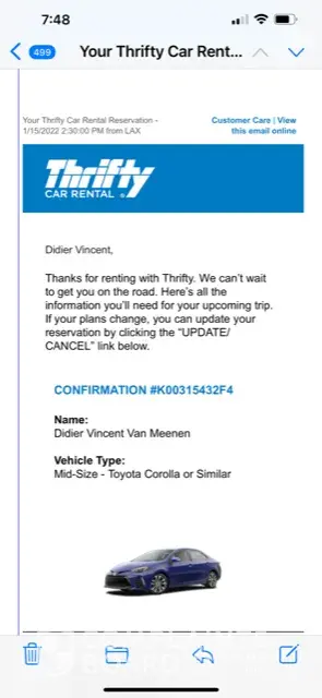 Now, however, he received a letter from them stating that after "their investigation," (which appears only receiving a copy from thrifty of my initial receipt for the booking), they advised that he is still liable for the rental charge!
