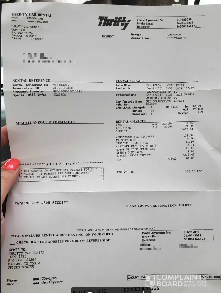 I have stayed on hold with thrifty many times for over 40 minutes. The two times I was actually connected to an agent, I was disconnected after I was told that they are "looking into it". I have contacted Thrifty 5 times via their website and have received no answer. I have a PDF of all supporting documentation.