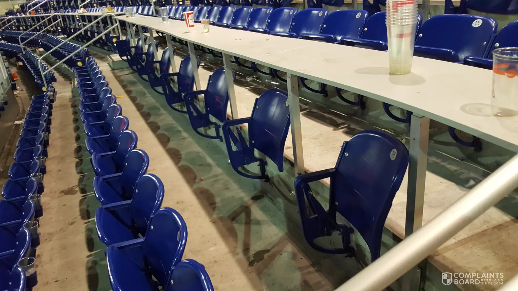 Upon arriving at the place I noticed that the chairs that sold me had been dismantled and turned into tables, according to attached photos. A few minutes of starting the show I had no choice but to see the show in the stadium bar, with people in front of us and with a very poor visibility. I paid to see the show sitting and in a place of good visibility and I ended up seeing the show in hand. My girlfriend and I feel unjustified and expect a response from Ticketmaster.
