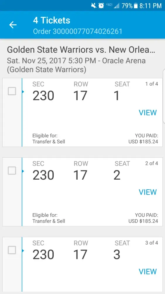 What were the terms and conditions for the tickets? Did you only pay face value for the tickets?