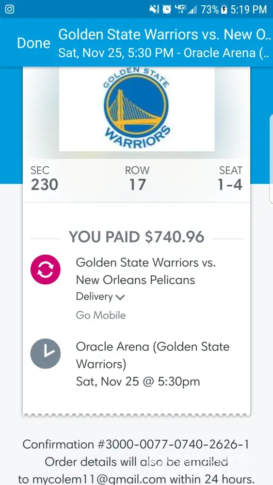 My name is Mycole Meeske. Ticket master double booked our seats to the Golden State Warriors Game (11/25/17). Let me start by saying that my partner and I flew from Washington State to be at this game tonight. We spent thousands of dollars on airfare, jerseys, travel expenses, $40 for arena parking, and our $740 nose bleed seats, all for the love of the Golden State Warriors. Tonight we were thoroughly disappointed by ticket master, the Oracle arena employees, and the franchise itself. We were sent back and forth from employee to employee, I was transferred from one ticket master employee to the next, having to re-tell our story over and over again, we missed THE ENTIRE game, and not one person was able to answer our questions, or provide us with any kind of solution. This trip was for my partners 26th birthday, and no apology or refund will give us this experience back... My heart is broken over this. I would greatly appreciate anything you could do to help ease the pain of this disappointing experience. Thank you for listening to our story, and putting up with us! I look forward to hearing from you soon, and I have faith you will come up with some way to somewhat make up for this. Otherwise you will lose several valued customers, and I will make sure I continually share my disappointing experience with Ticketmaster.