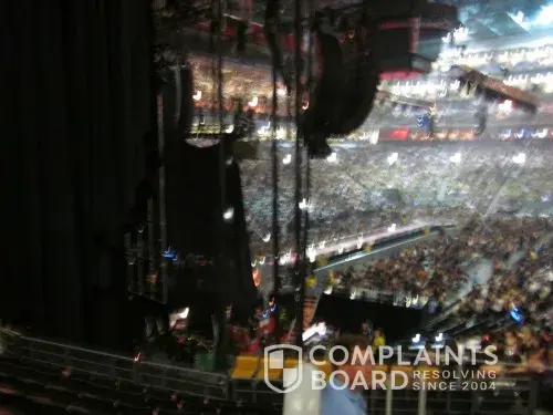 We were mislead by false and incomplete advertising and should be compensated at the very least for the obstructed view (and by the hits from the large movie camera to my face and upper body).They also stated they were a Better Business Bureau Recommended Business but when I checked after this experience, they had a “F” Rating.VIP Nation has refused any compensation. Ticketmaster states it isn't their issue although one woman accidentally told me our “ACTUAL” tickets were voided two days before the concert & new ones were issued.They also advertised themselves as a Better Business Bureau recommended Business but after the concert, I checked & they actually had an "F" Rating.