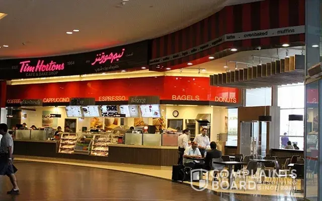 My complaint is why do you not have more staff on during the busy times? The airport was full and people were frustrated in line. And yet when the airline crew wanted a coffee they walked up to the side and were served right away. And why not get staff every once in awhile to check in and have the shelves stocked? You know your inventory will be sold especially since there are many families and they will buy Timbits for their children to hold them through. I was totally disgusted and I am sure I was not the only one. Your establishment in the airport was a huge disappointment!