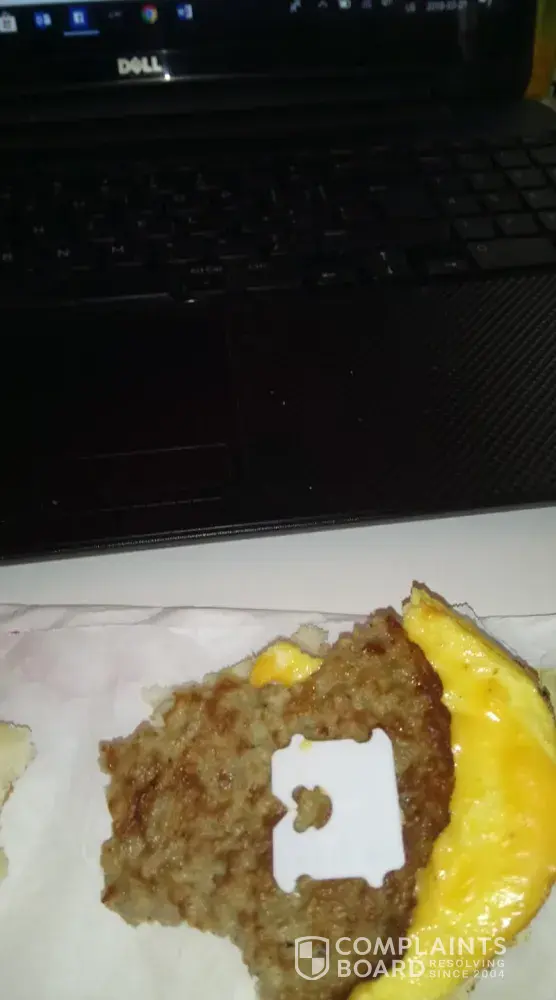 When I bit into my muffin I started to chew and thought the sausage was tough and to my surprise I pulled out of my mouth a white bread twist tie.