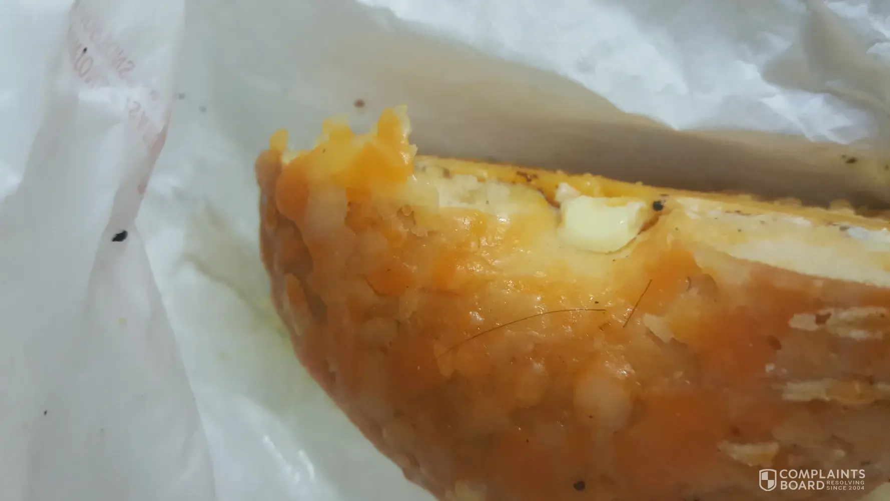 3 hairs found on four cheese bagel!!